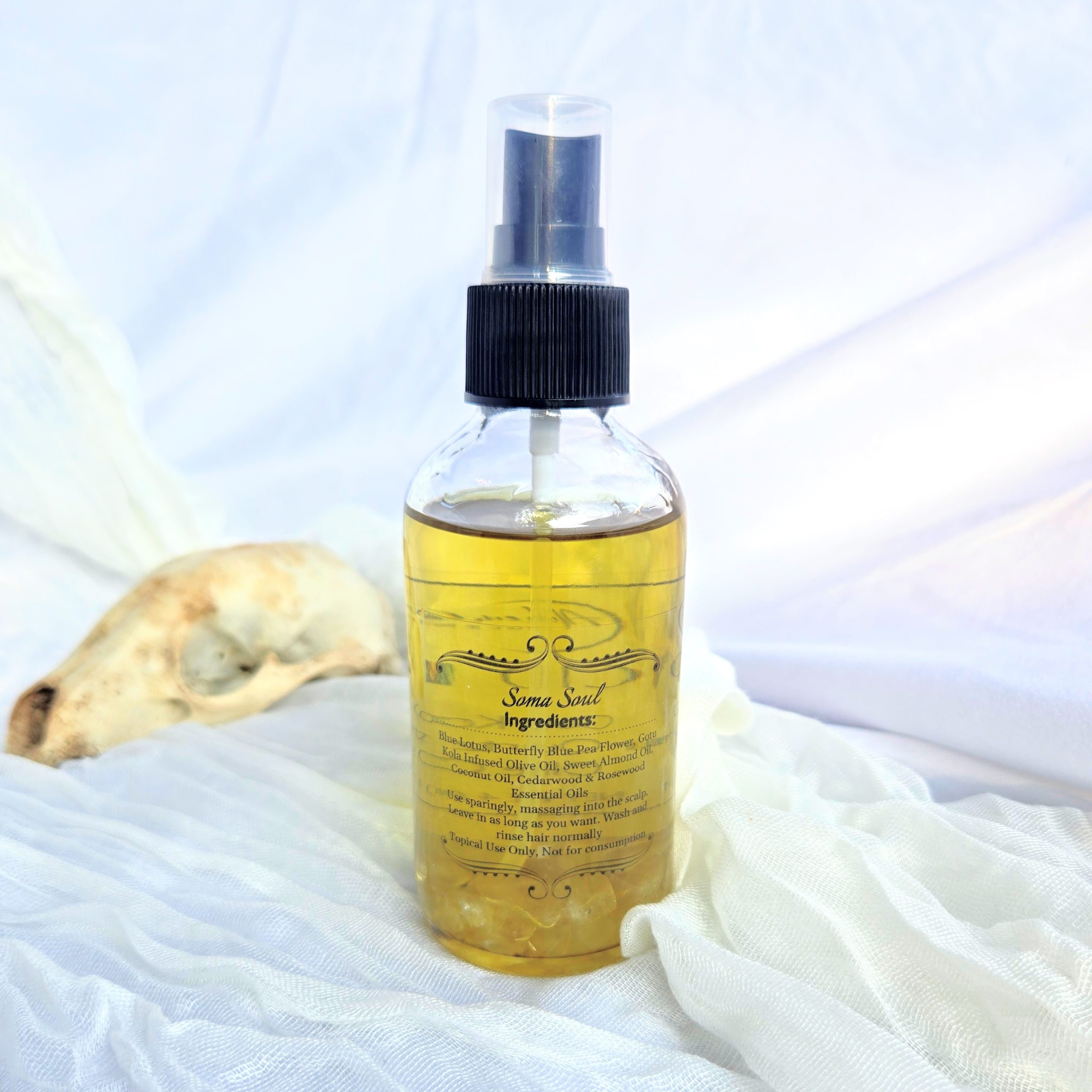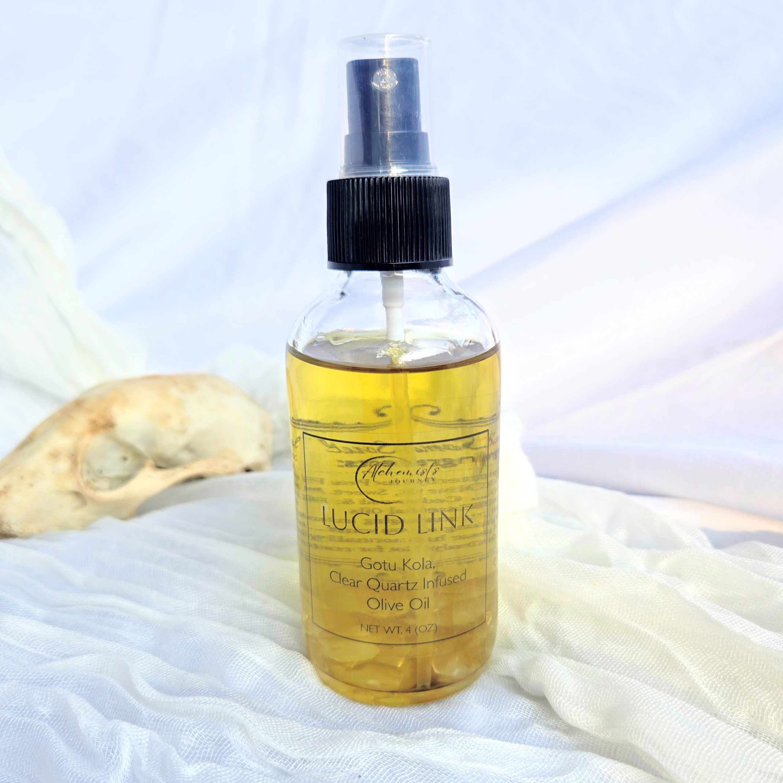 Lucid Link is an intentional hair oil crafted to serve as a conduit for dream work, meditation, and intuitive clarity. This potent formula features Blue Lotus and Butterfly Blue Pea Flower, known botanicals for spiritual connection and deep relaxation. The oil blend nourishes the scalp while helping you build a stronger connection to your subconscious mind and inner knowing. Lucid Link is a core component included in our comprehensive Manifest Ritual.