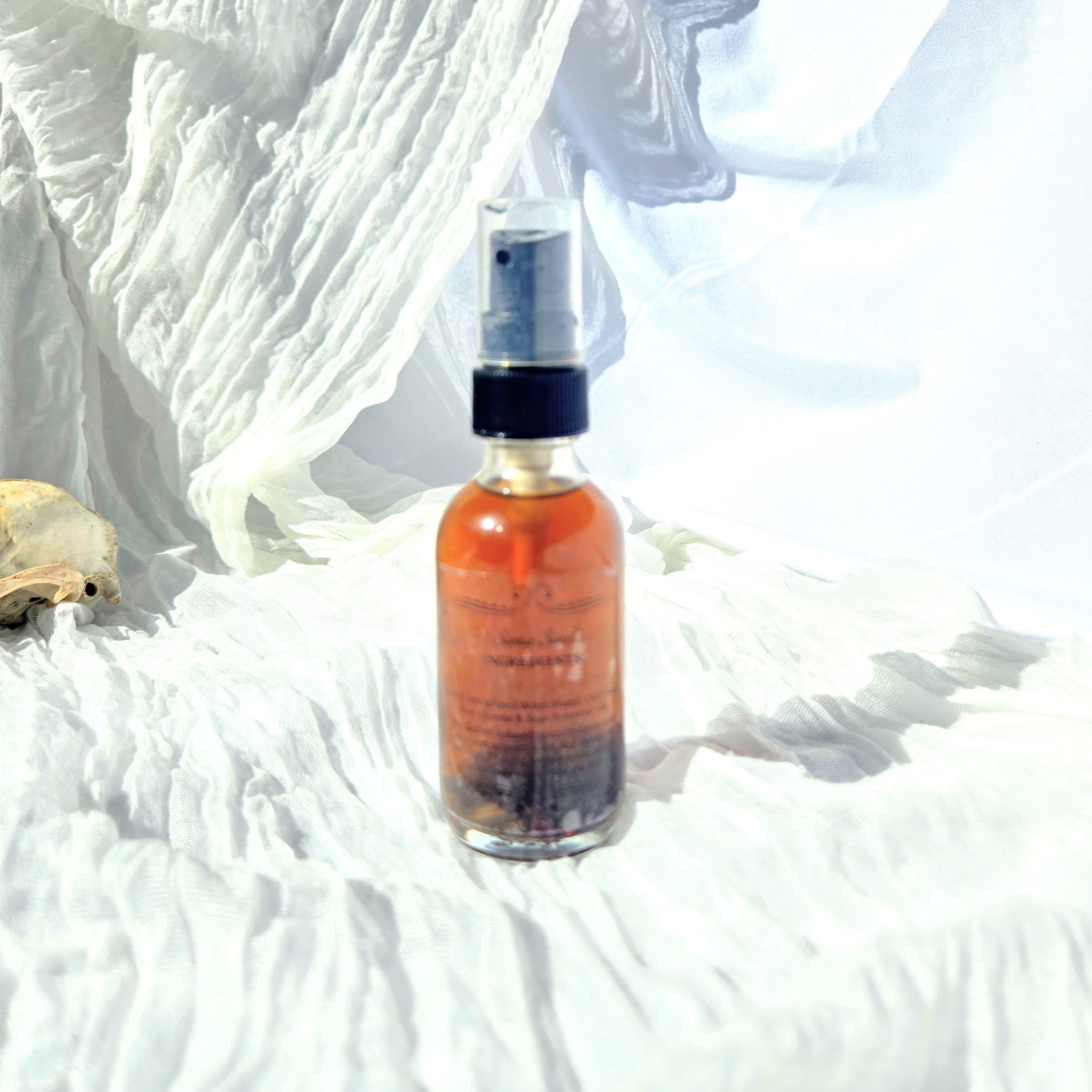 A Garnet-infused grounding spray designed to support and stabilize your energy. Made with a tincture of Green Tea and Witch Hazel, and essential oils including Clary Sage, Cypress, and Jasmine, it helps center your energy and aligns with the Root Chakra.