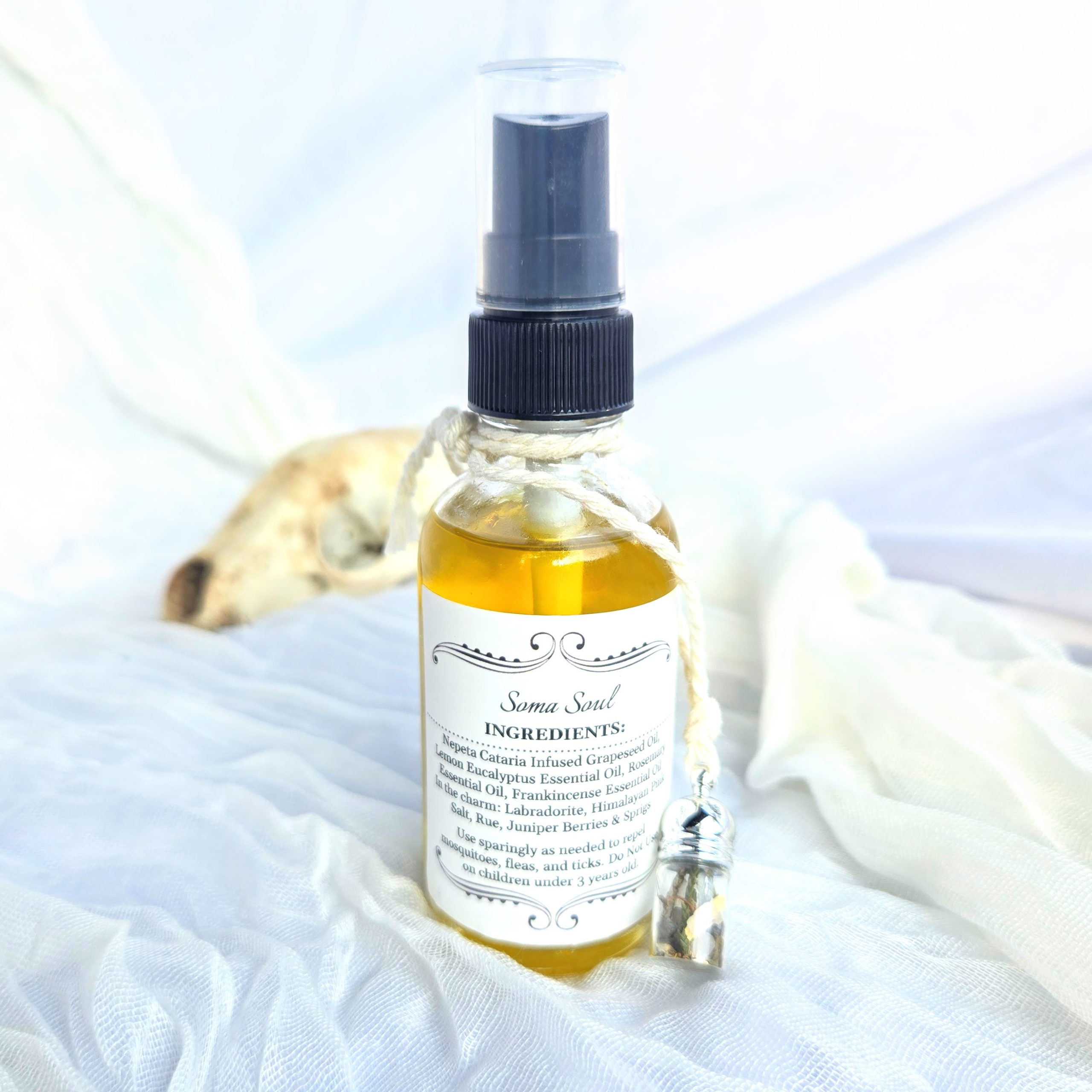 Crafted with a base of Nepeta Cataria (Catnip) infused oil for its potent protective and repellent properties and ritual uses.